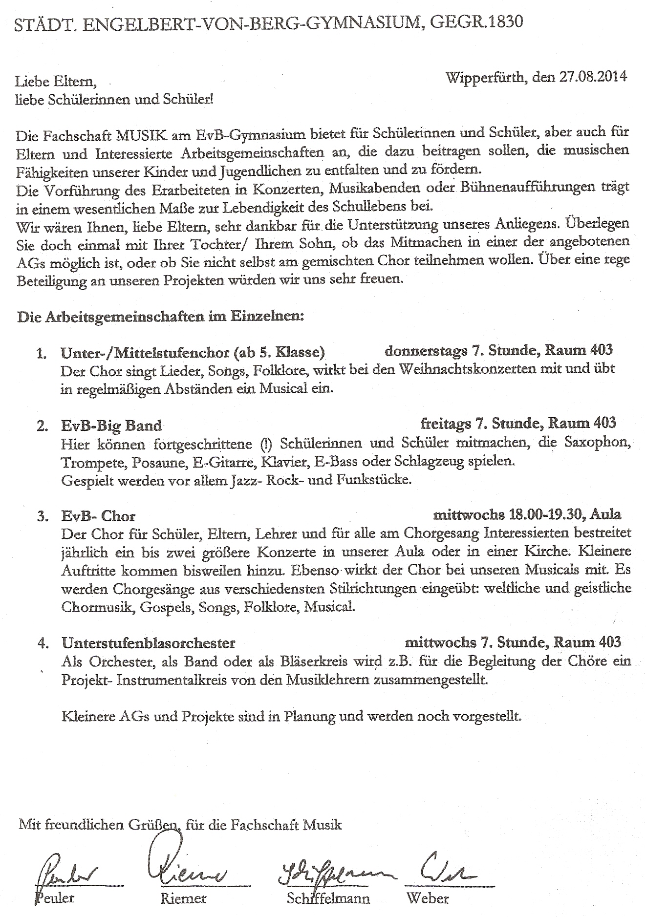 Musikangebot am EvB